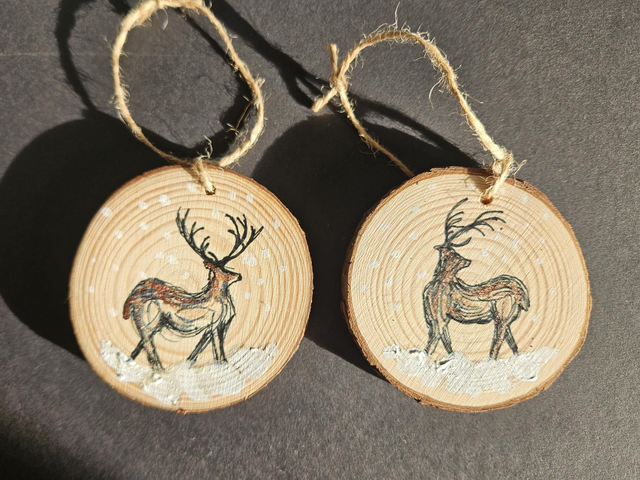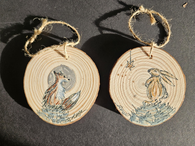 My little hand sketched and painted log slice decorations make great stocking fillers for loved ones. Let me know what name or short message you would like and I will personalise them for you.